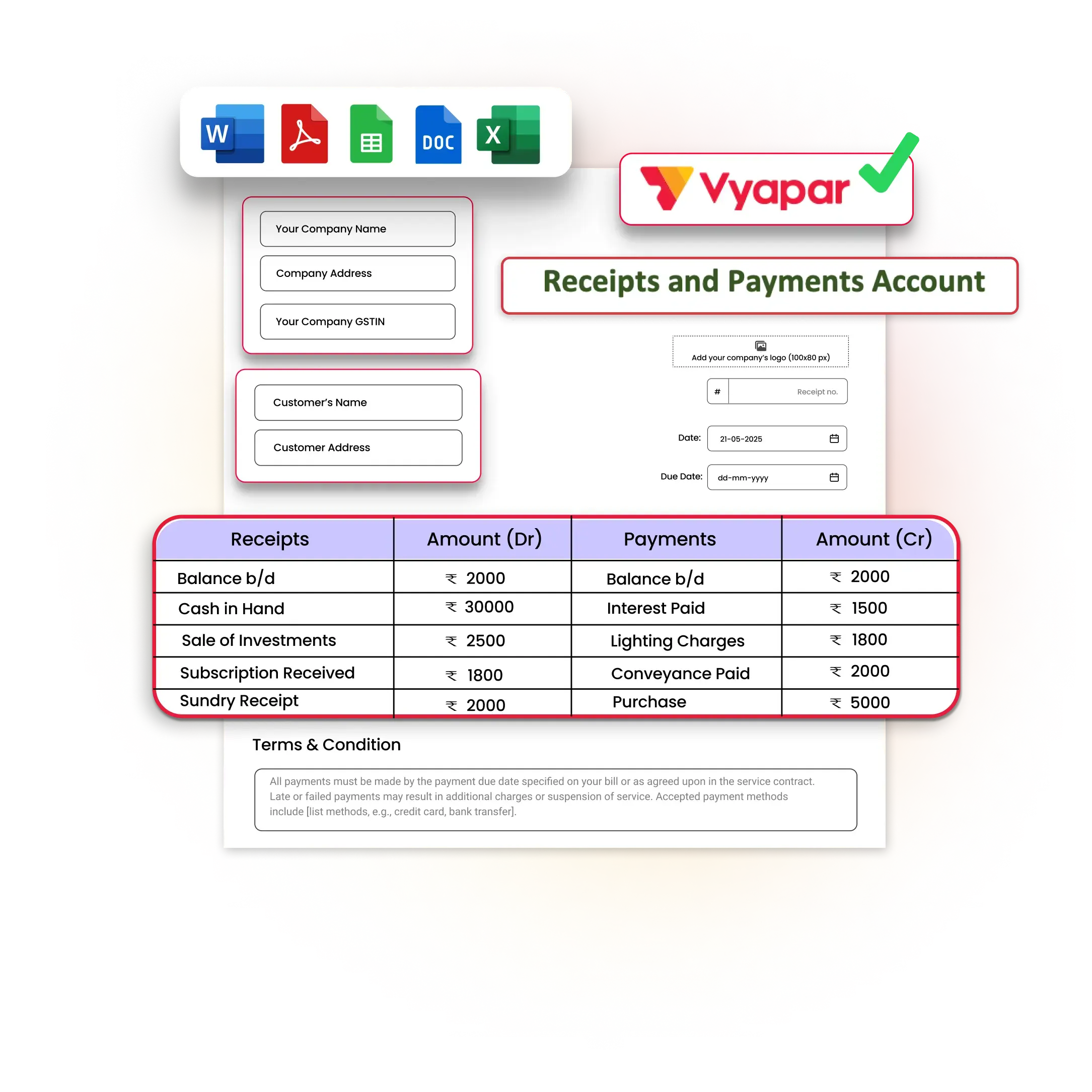Download Receipt And Payment Account Format in Excel, Word, and PDF