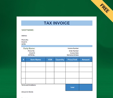 - Include HSN ((Harmonized System of Nomenclature) Code, if applicable