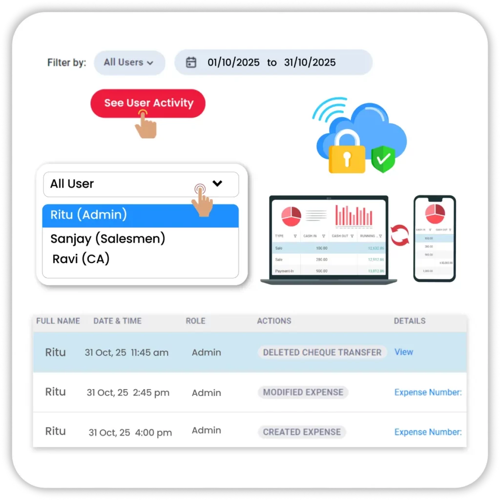 Your financial data stays safe and accessible at all times. Vyapar securely backs up your expense records in the cloud, letting you and your team manage business finances from any device.