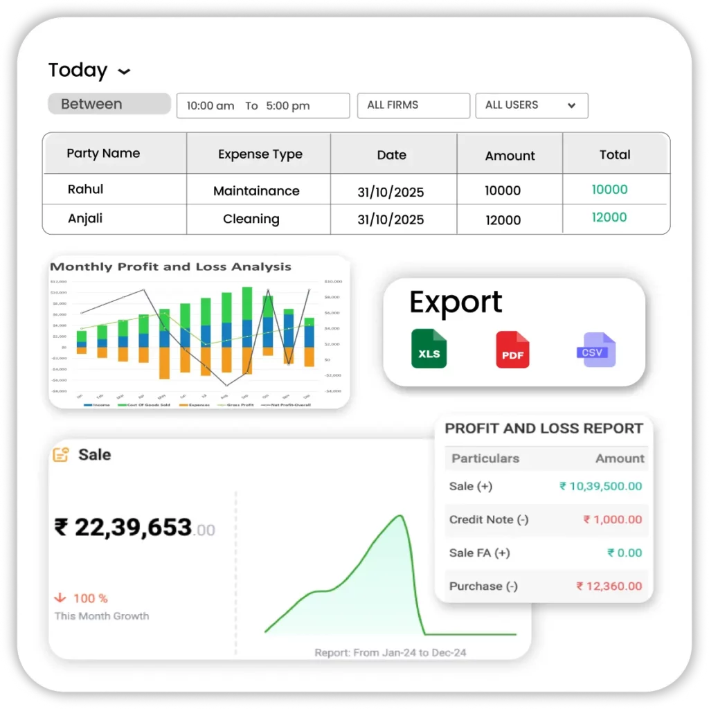 - Easy Export: Download reports in PDF or Excel to share with your accountant or team.