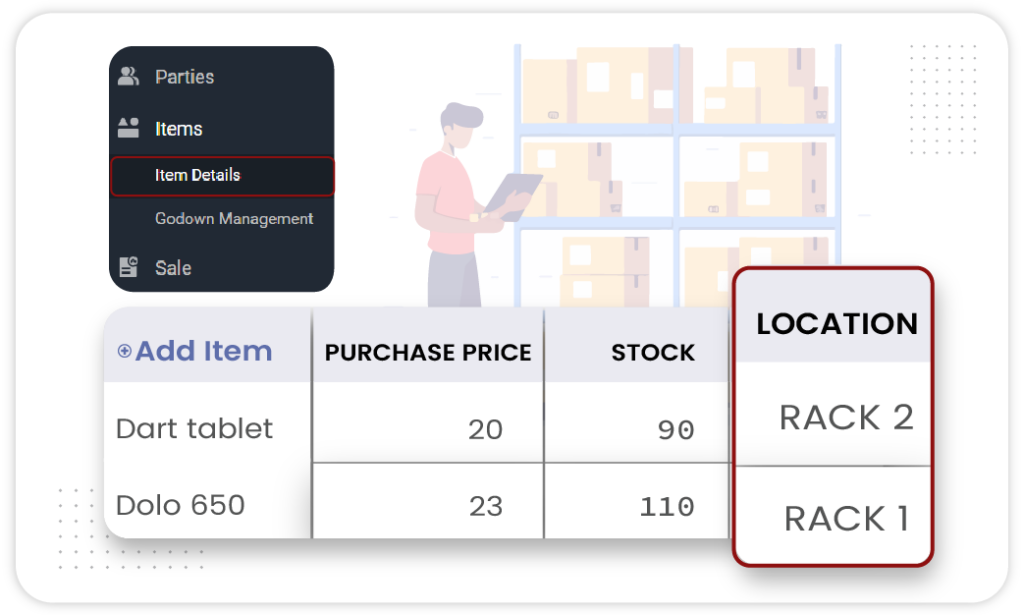 Organize your medical store neatly with rack-wise management features provided by Vyapar’s medical shop billing software.
