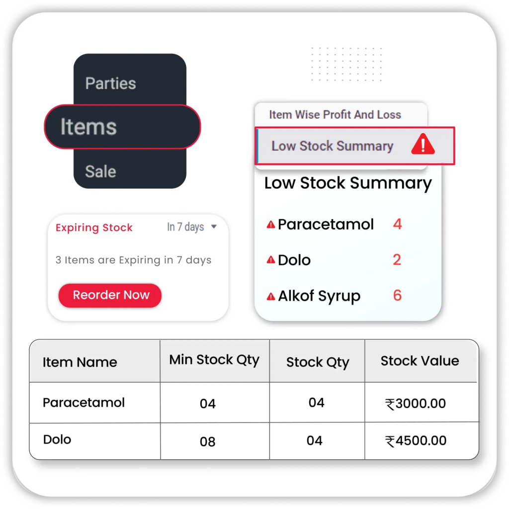 - Prevent Stockouts: Always have popular medicines ready. The medical store billing software alerts you before critical stock-outs happen, saving sales and customer trust.