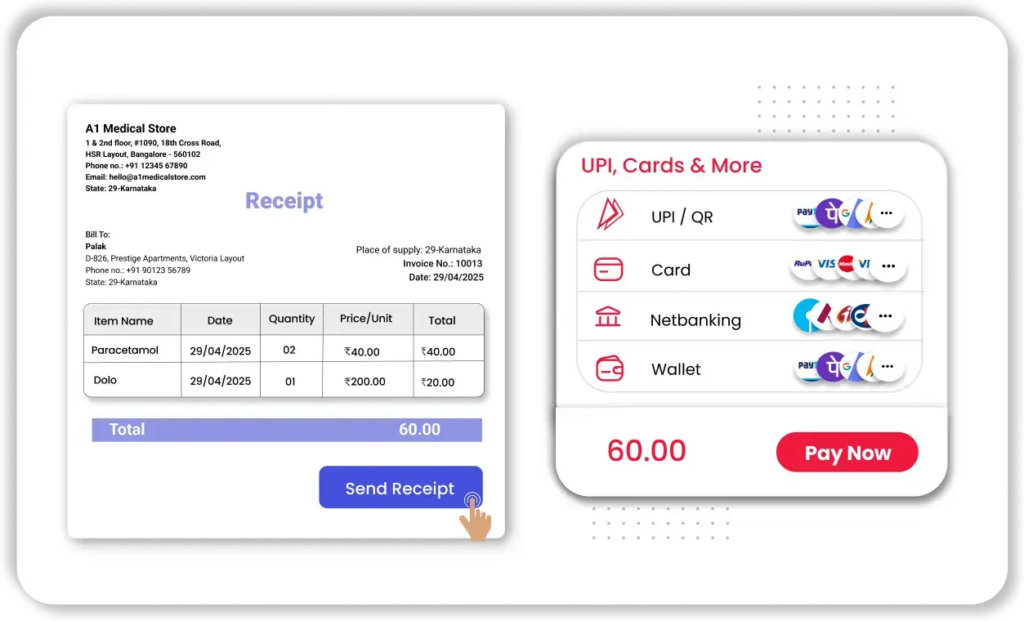 With Vyapar’s medical store billing software free download, the medical shop can offer digital payment options, making billing faster and more convenient for customers.