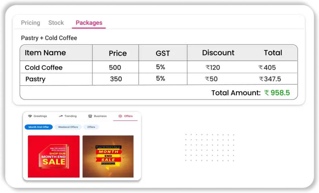 - Promote on Invoice: Print combo offers and deals on bills to encourage repeat sales and upselling.