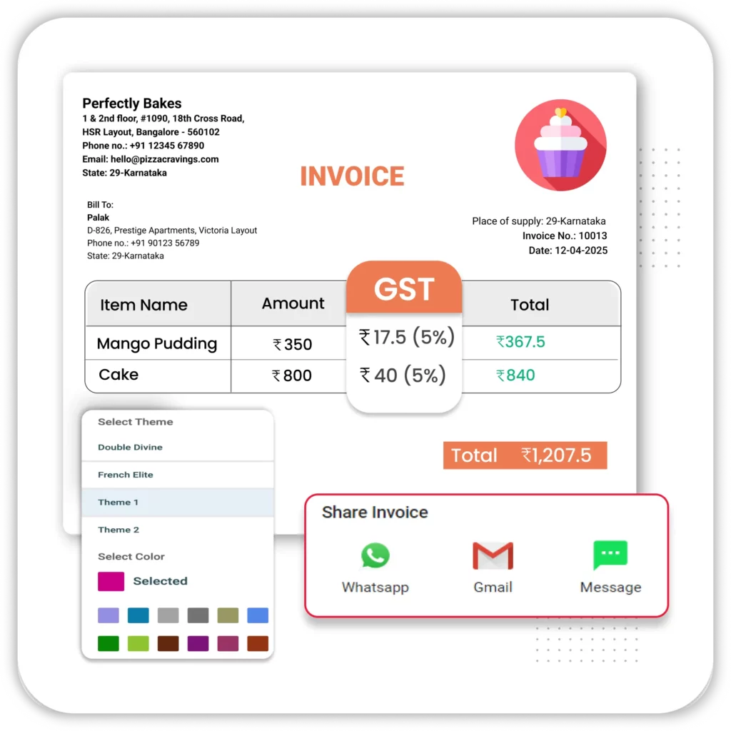 Stand out with bills that reflect your brand. Vyapar’s bakery billing software lets you customize invoices to match your bakery’s style.