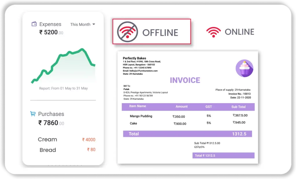 Vyapar’s bakery software free version supports offline billing—perfect for stores with poor internet access.