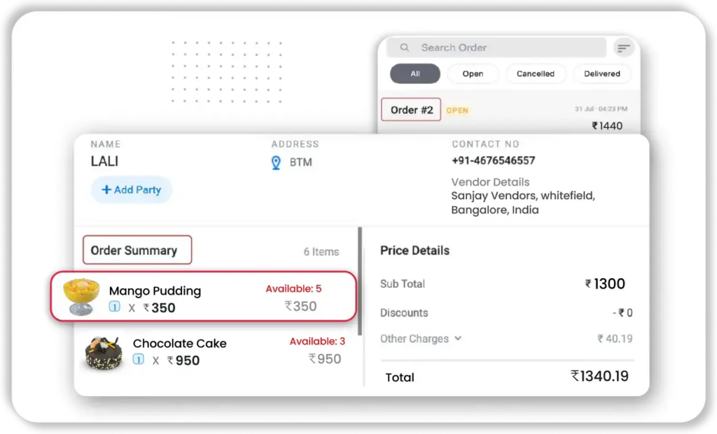 Manage custom orders like birthday cakes, tiered wedding cakes, or festive sweets using this all-in-one bakery billing solution.