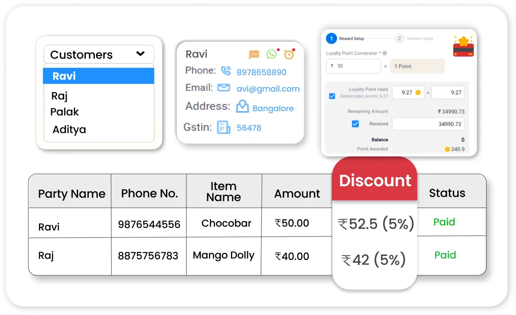 - One-tap billing with GST-compliant invoices