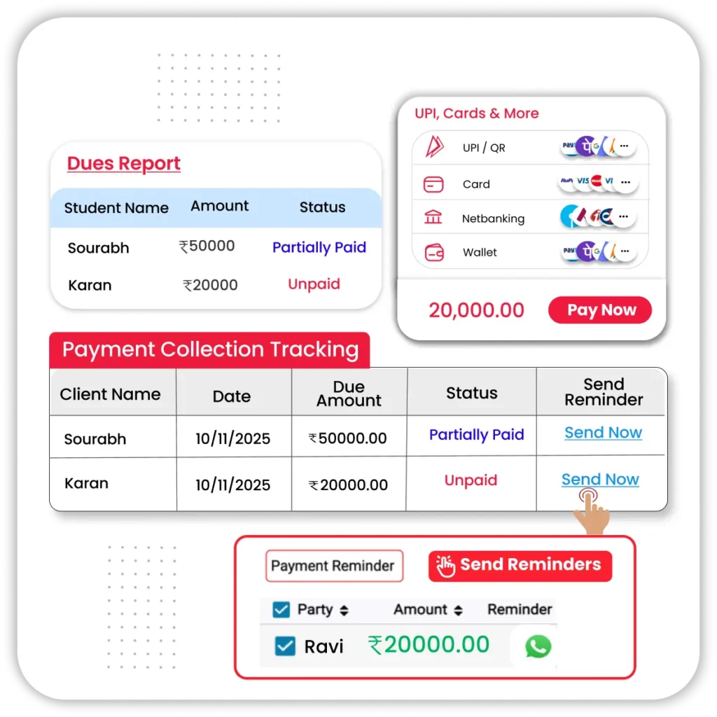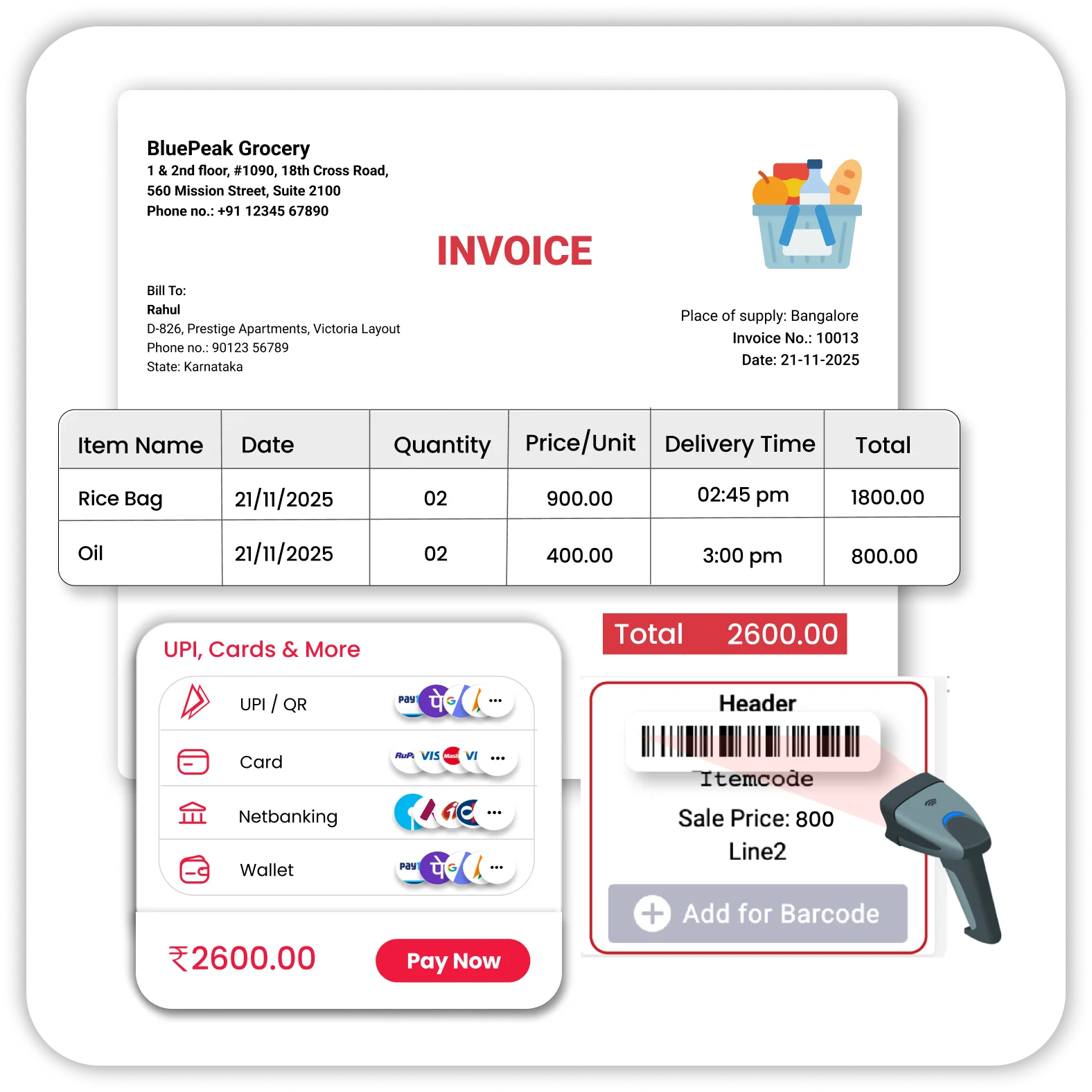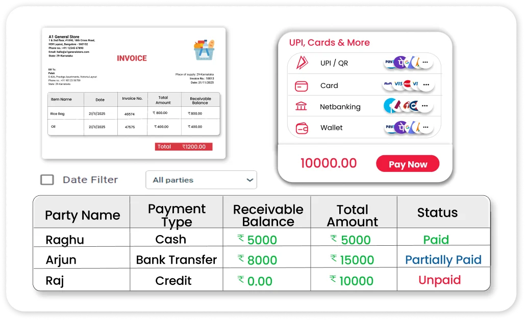 - Accept UPI, cash, card, and wallet payments