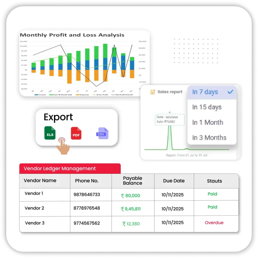 Vyapar gives store owners clear visibility into daily business performance with easy-to-understand reports. It highlights fast-selling items, slow-moving stock, and profit margins so you can take smart purchase decisions.