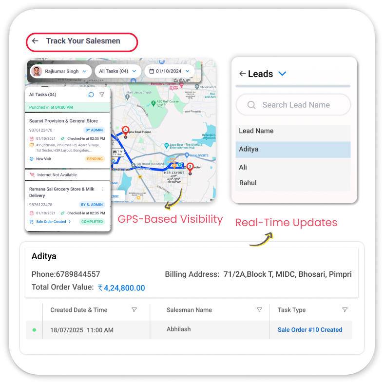- Live Location Tracking: Track the real-time location of your field salesmen to ensure timely visits and efficient route coverage.