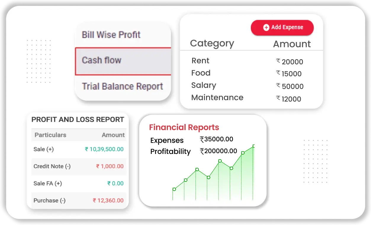 - Profit & Loss Insights: Know exactly where your business stands with accurate cash flow and profit reports.