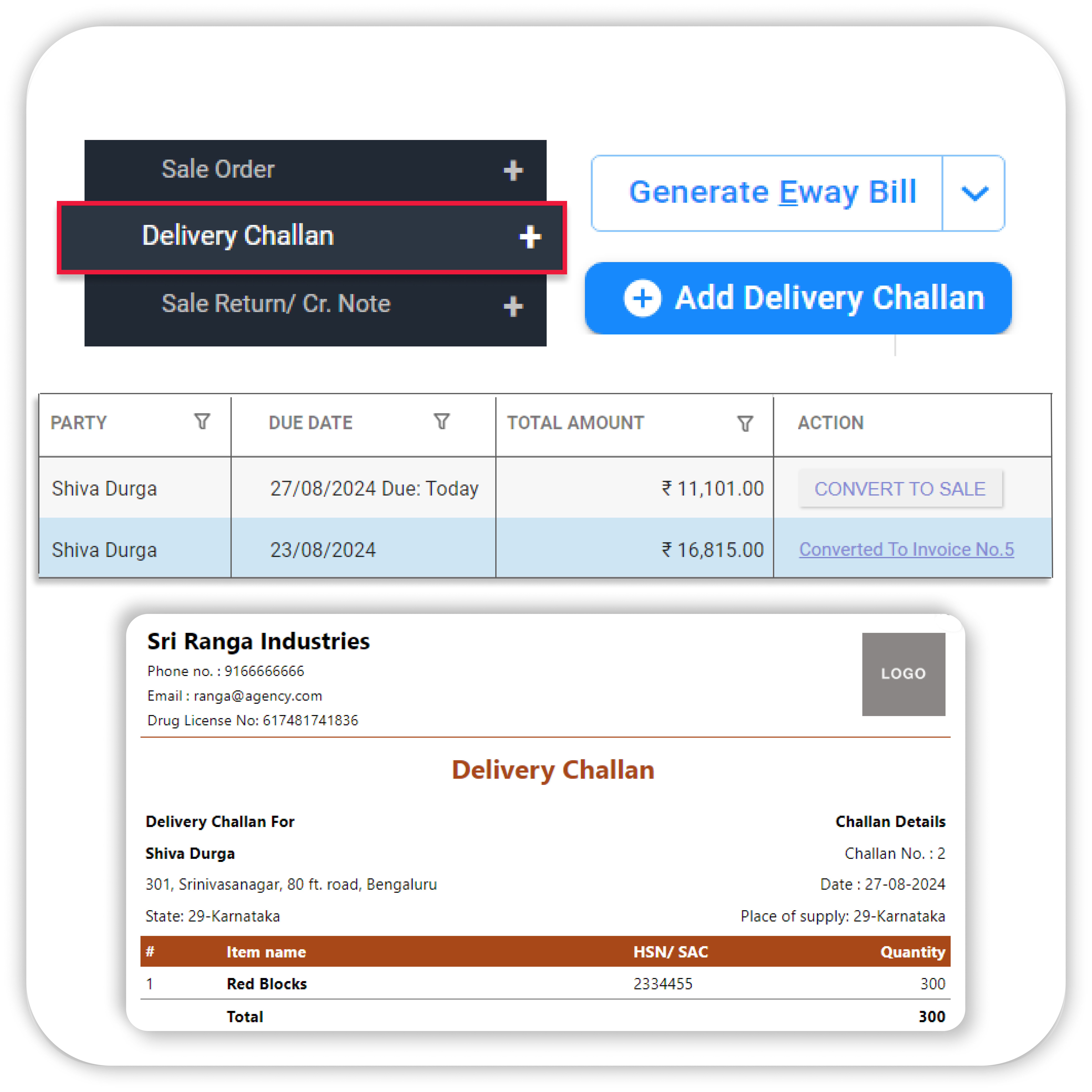 - Consignee Confirmation: Convert challans to invoices only after getting delivery confirmation from the recipient—ensuring accurate billing and trust.