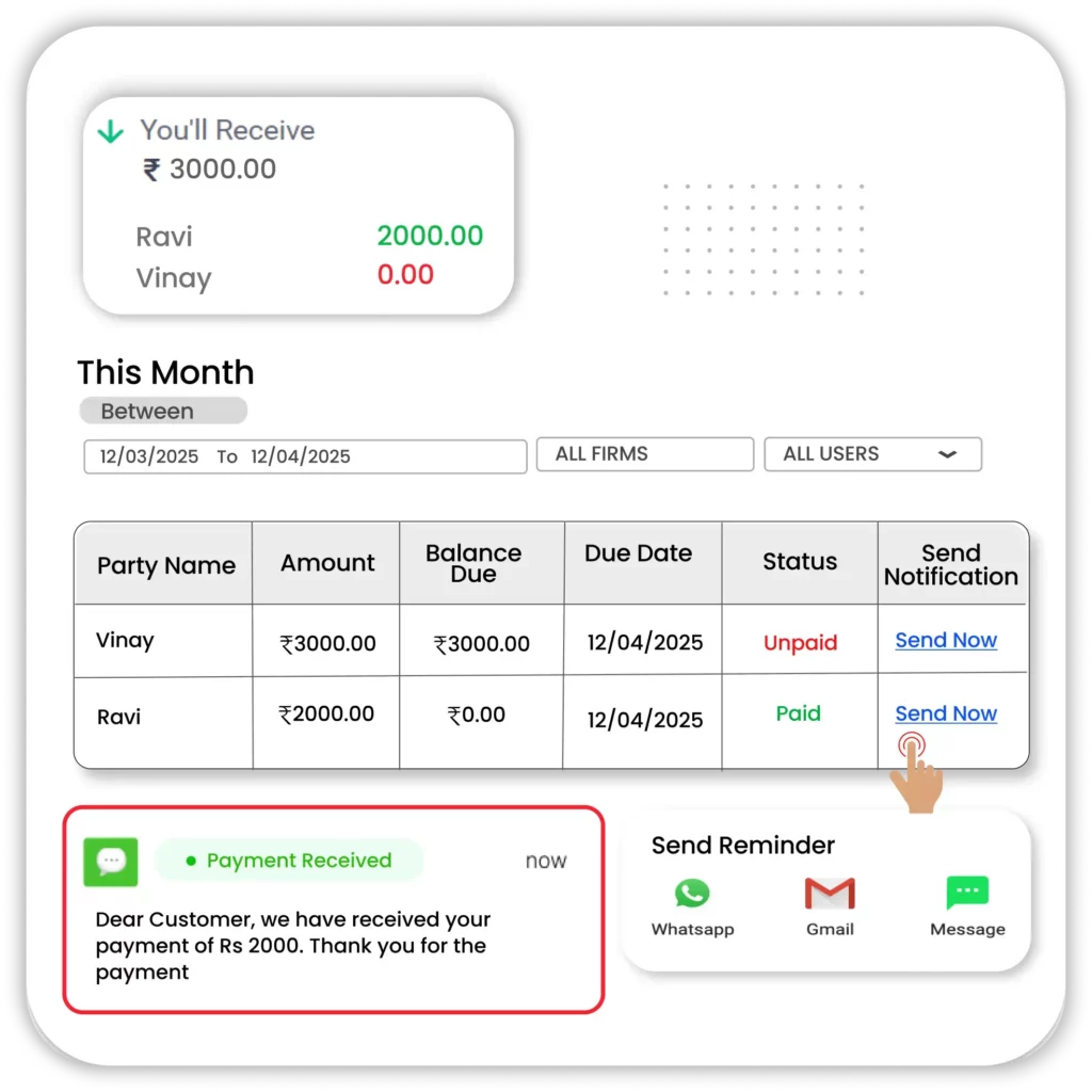 - Personalized Communication –Send reminders and offers to keep customers engaged with Vyapar’s quick dry clean software.