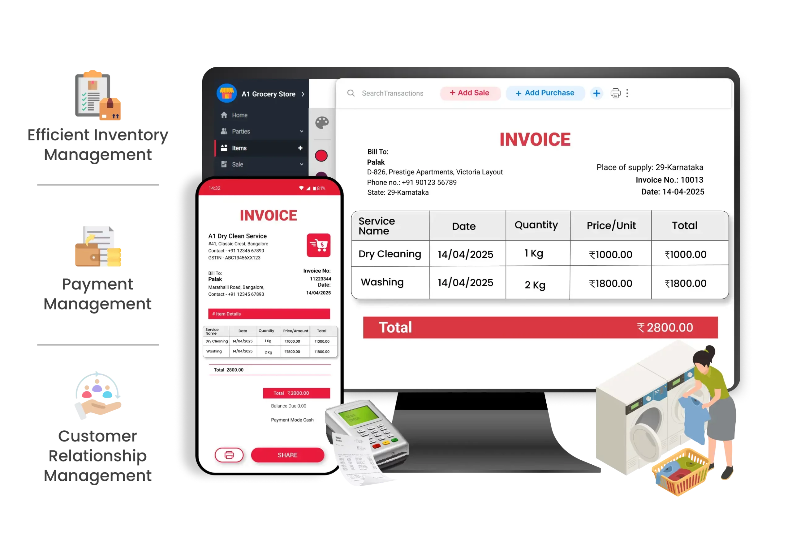 Vyapar’s dry cleaning software enhances customer satisfaction by streamlining order processing, accurate billing, and quick payment with the POS system for dry cleaners.