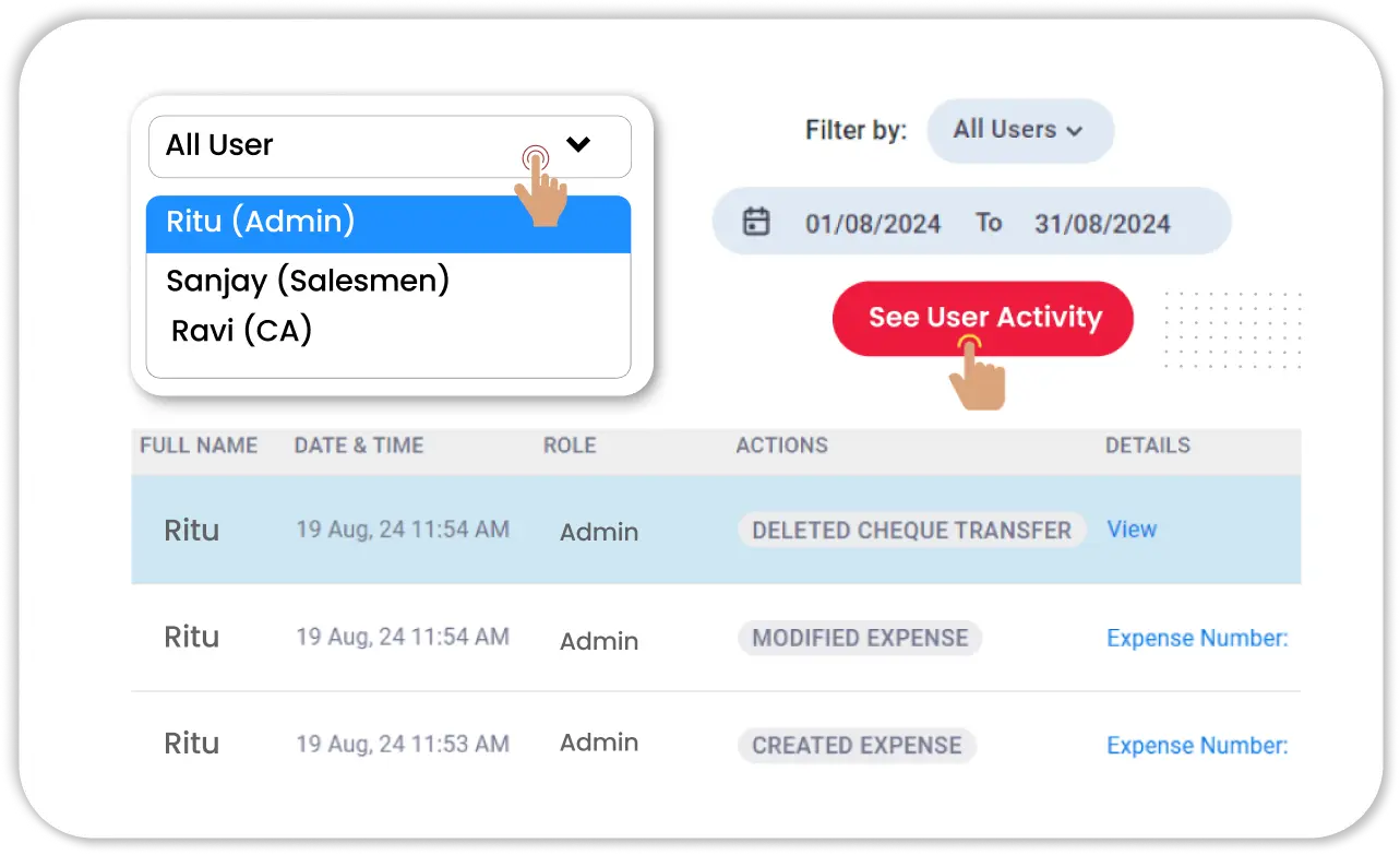 Efficiently manage your team and track user activity with Vyapar’s quick dry clean software.