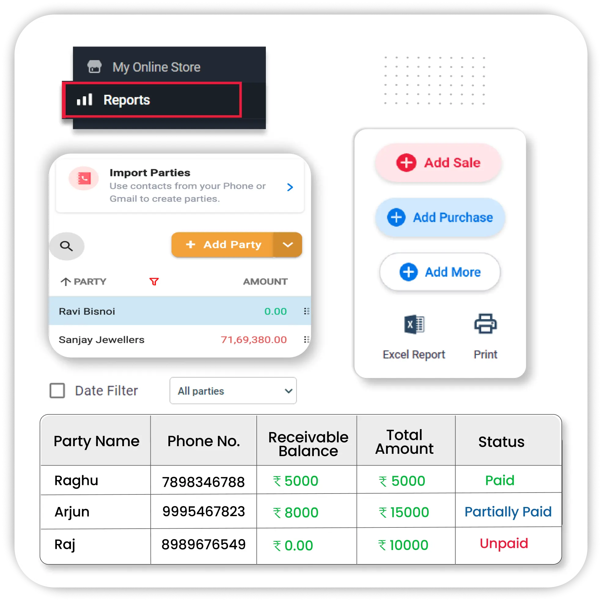 - GSTR Reports Ready: Export GSTR-1, 3B, and more directly from the app, making Vyapar a free solution for GST filing in small to mid-sized stores.