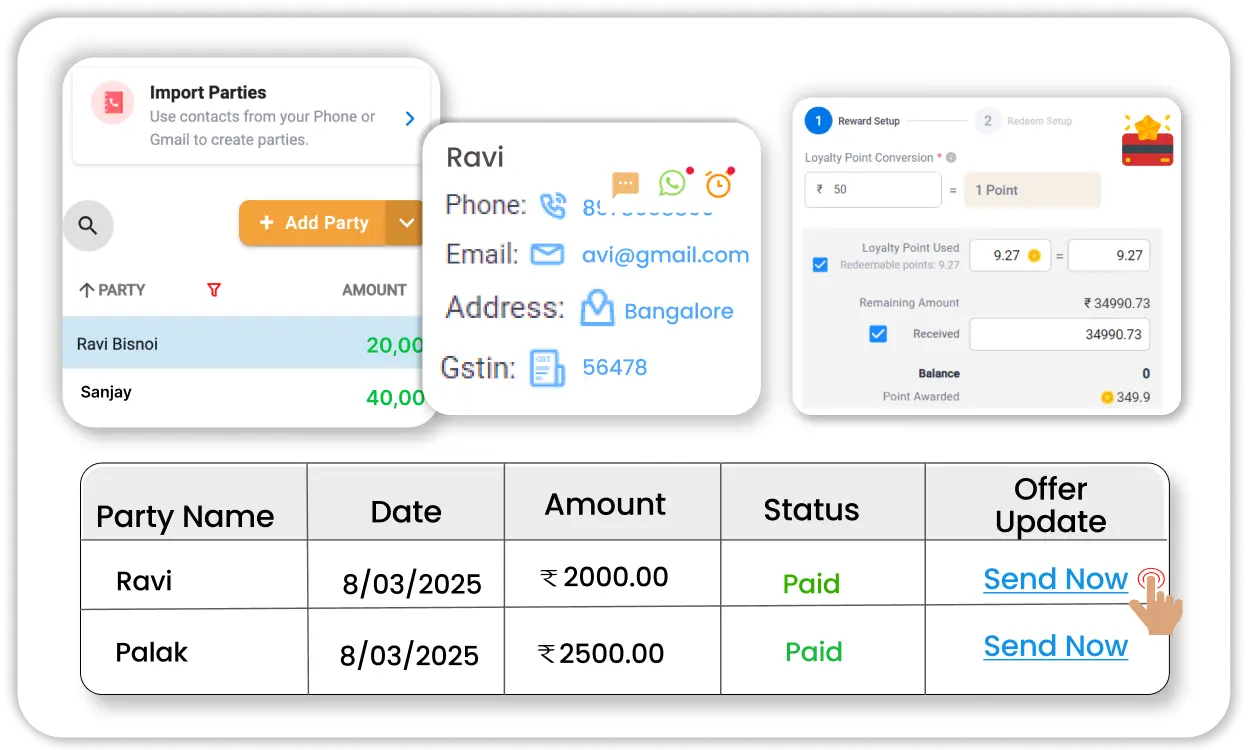 - Loyalty Points Integration: Run simple loyalty rewards in Vyapar — another reason it’s the best ERP for retail shops seeking to grow.
