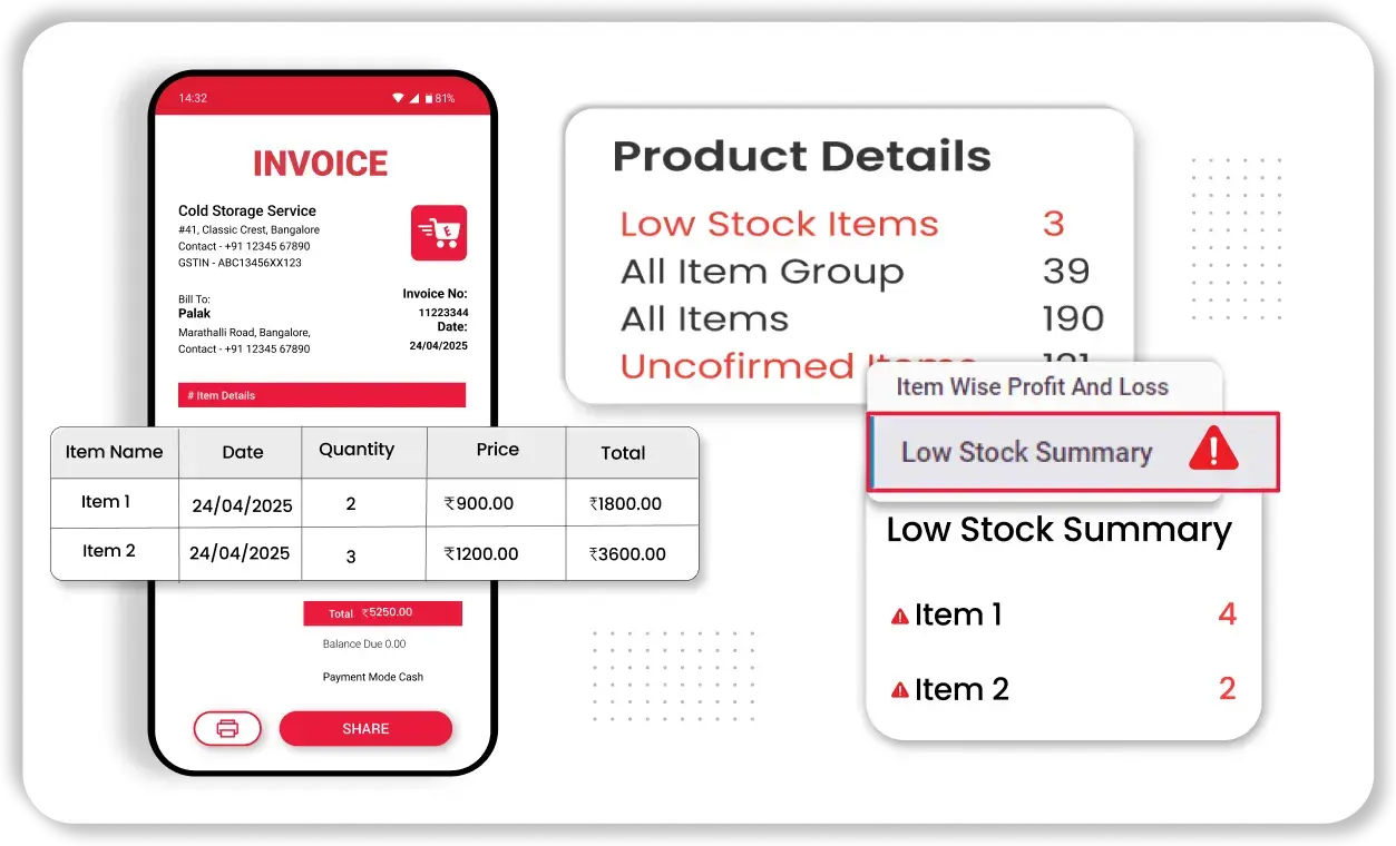 Vyapar offers one of the best invoicing features tailored for cold storage businesses. It simplifies billing, tax compliance, and bulk transaction handling.