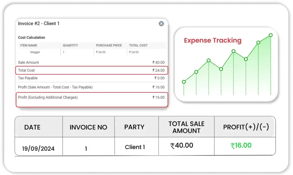 - Supports Profit Calculation: When you compare expenses to your sales data, Vyapar gives you a clear picture of your actual profit or loss—so you can take action early if needed.