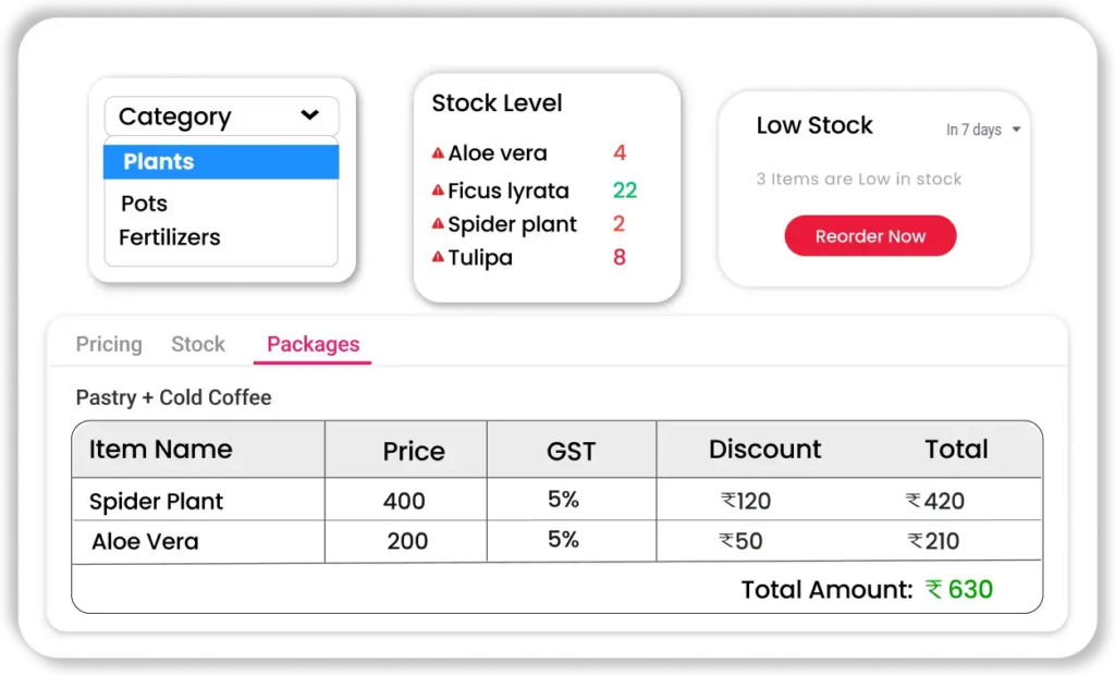 - Category-wise Sales Analysis: Generate detailed reports for each product category—like plants, pots, or fertilizers—so you can identify top-selling items and make smarter stock and pricing decisions.