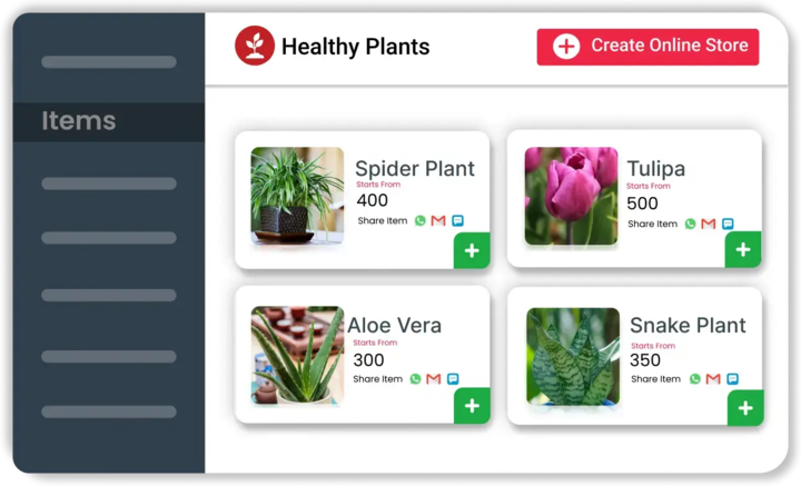 Generate GST-compliant invoices tailored for your nursery business. Print or share bills directly via WhatsApp, email, or SMS—complete with your logo and business details.