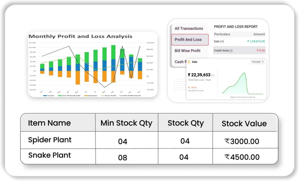 With Vyapar’s inventory management software, you can access your data across devices, ensuring real-time updates whether you’re in the greenhouse, office, or billing desk.