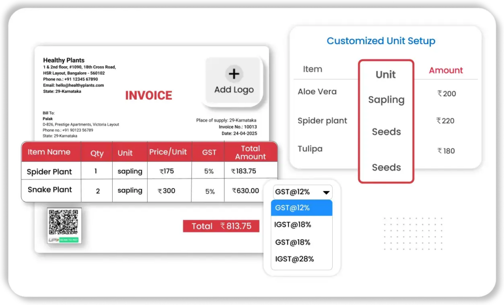 Vyapar isn’t just generic inventory software—it allows nurseries to manage a wide range of items like plants, seeds, saplings, fertilizers, and garden tools with ease. Whether you’re selling by pots, pieces, or kilos, Vyapar handles unit variations perfectly.