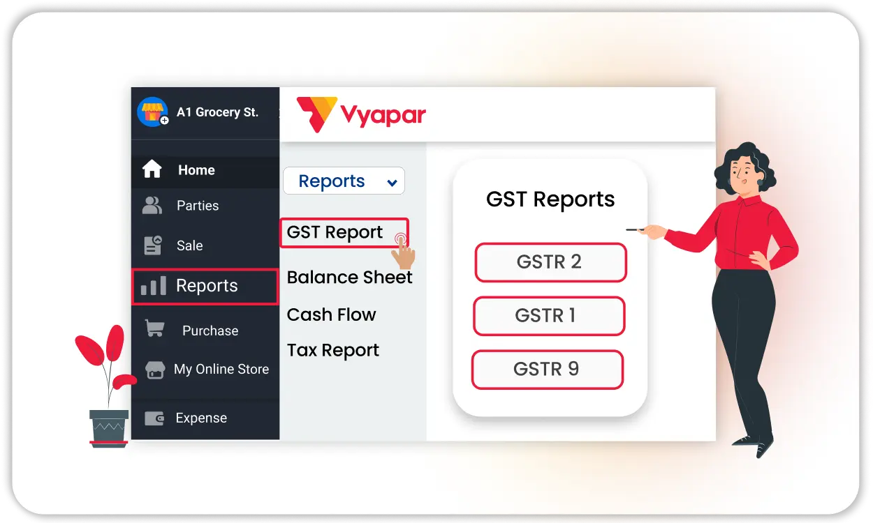 Stay compliant with tax laws through automated GST reporting in Vyapar’s warehouse management software.