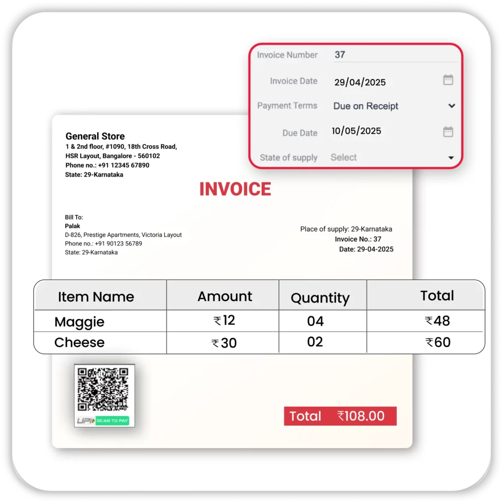 - Legal Compliance: Invoice formats follow India’s tax rules and audit standards. Keep your business safe and regulation-ready.