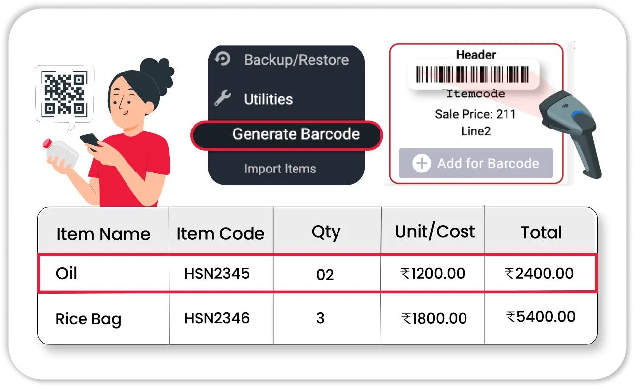 Boost efficiency with Vyapar’s digital receipt app that supports barcode scanning.