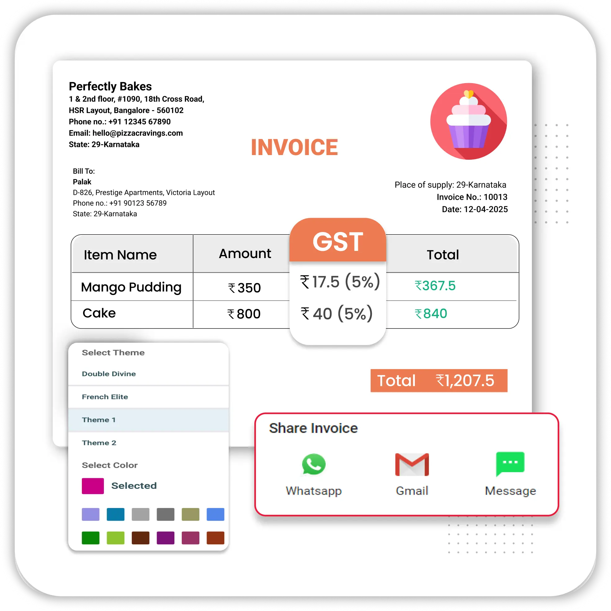 - Branded Bills: Add your logo, signature, and brand colors to each invoice. Impress customers with professional-looking documents.