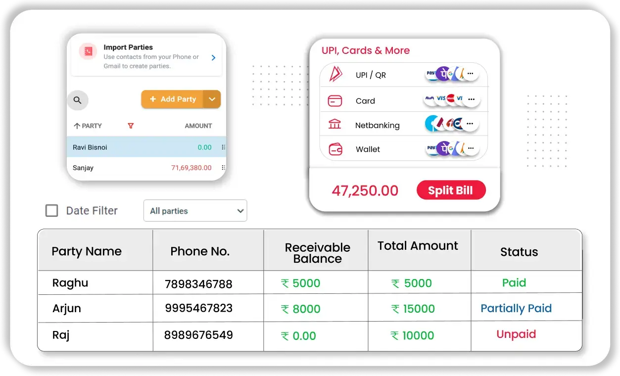 Vyapar tracks every payment and receipt, so you never lose track of what’s paid and what’s due.