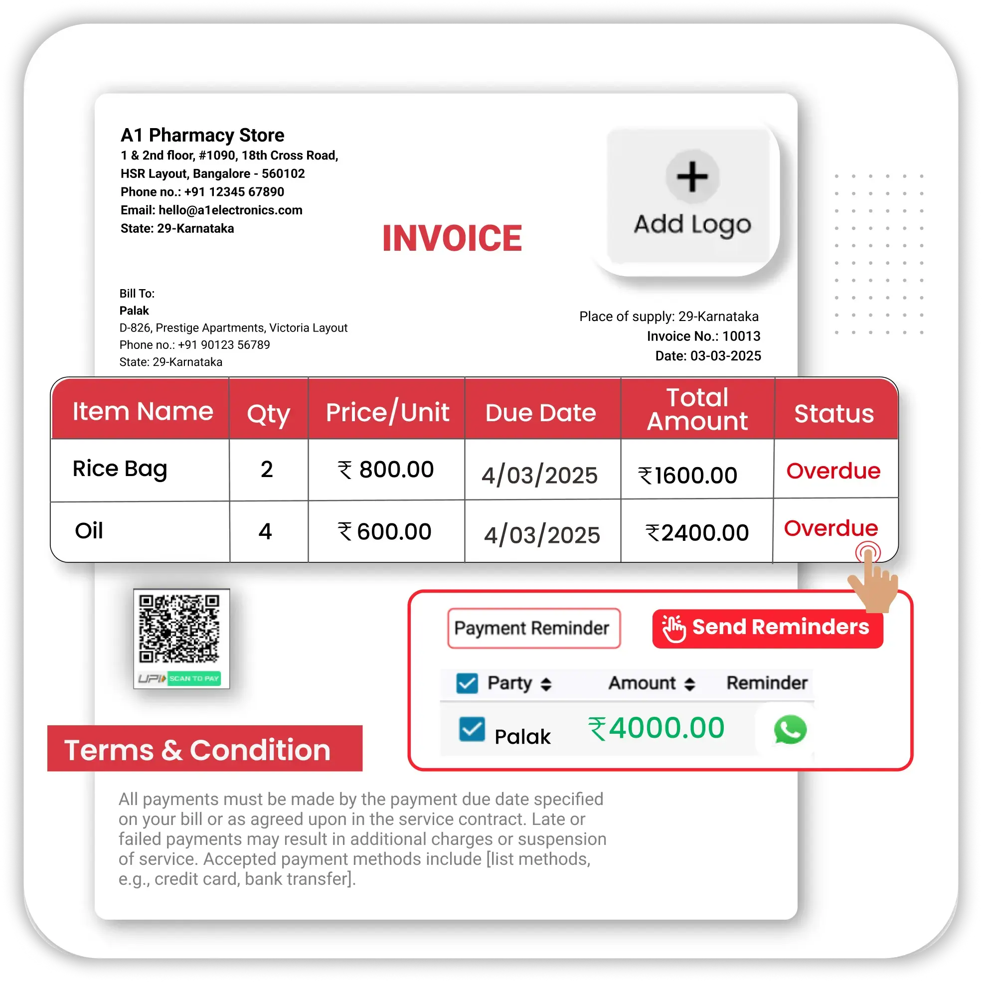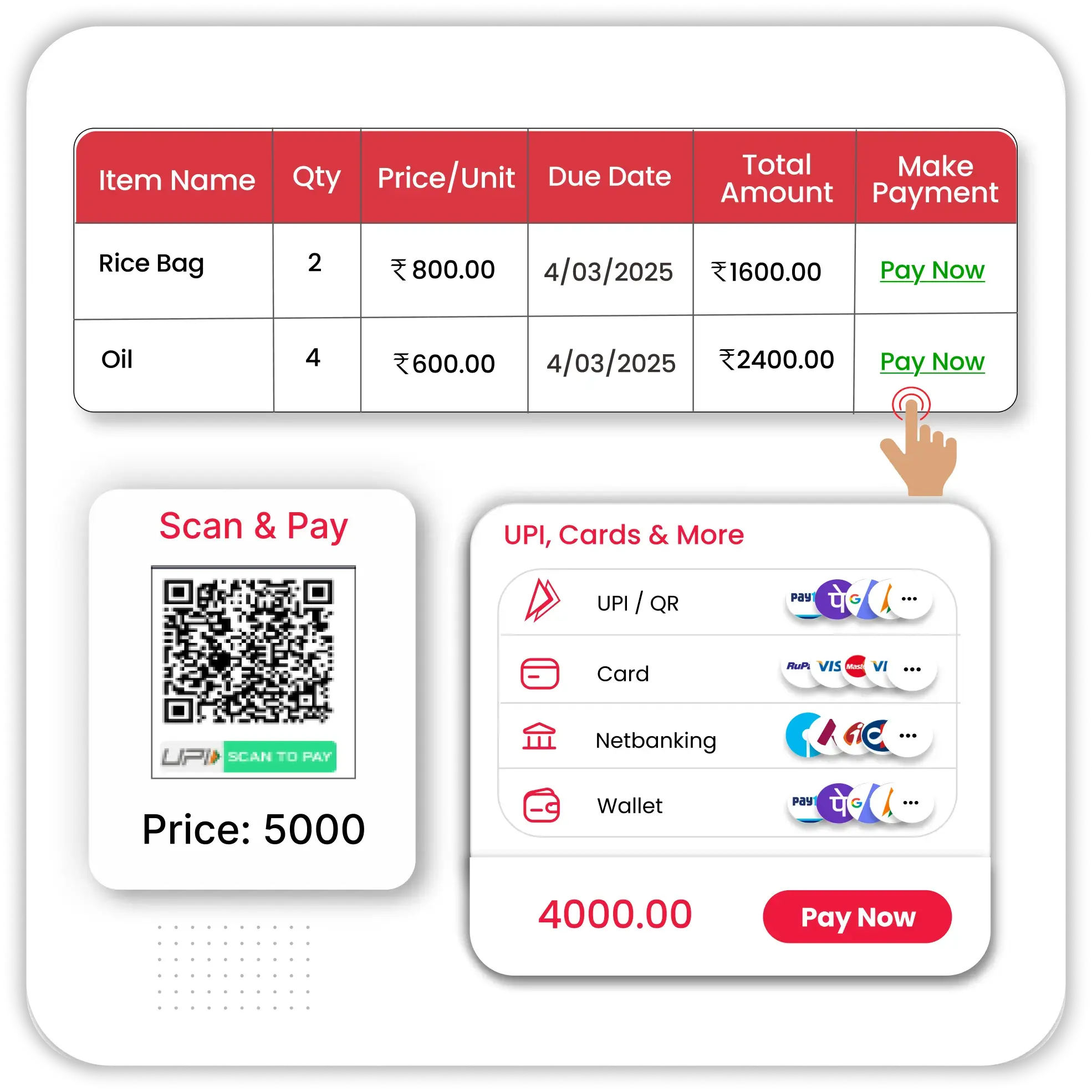 - Accept Digital Payments – Receive payments via UPI, Google Pay, PhonePe, and other digital wallets directly from invoices.