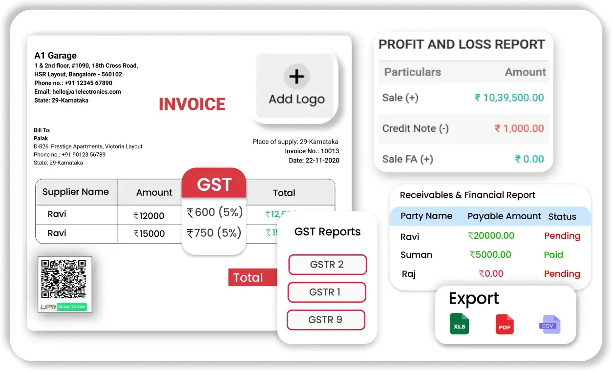 - GST & Tax-Compliant Invoicing – Generate GST-compliant invoices with automatic tax calculations for accurate financial reporting.