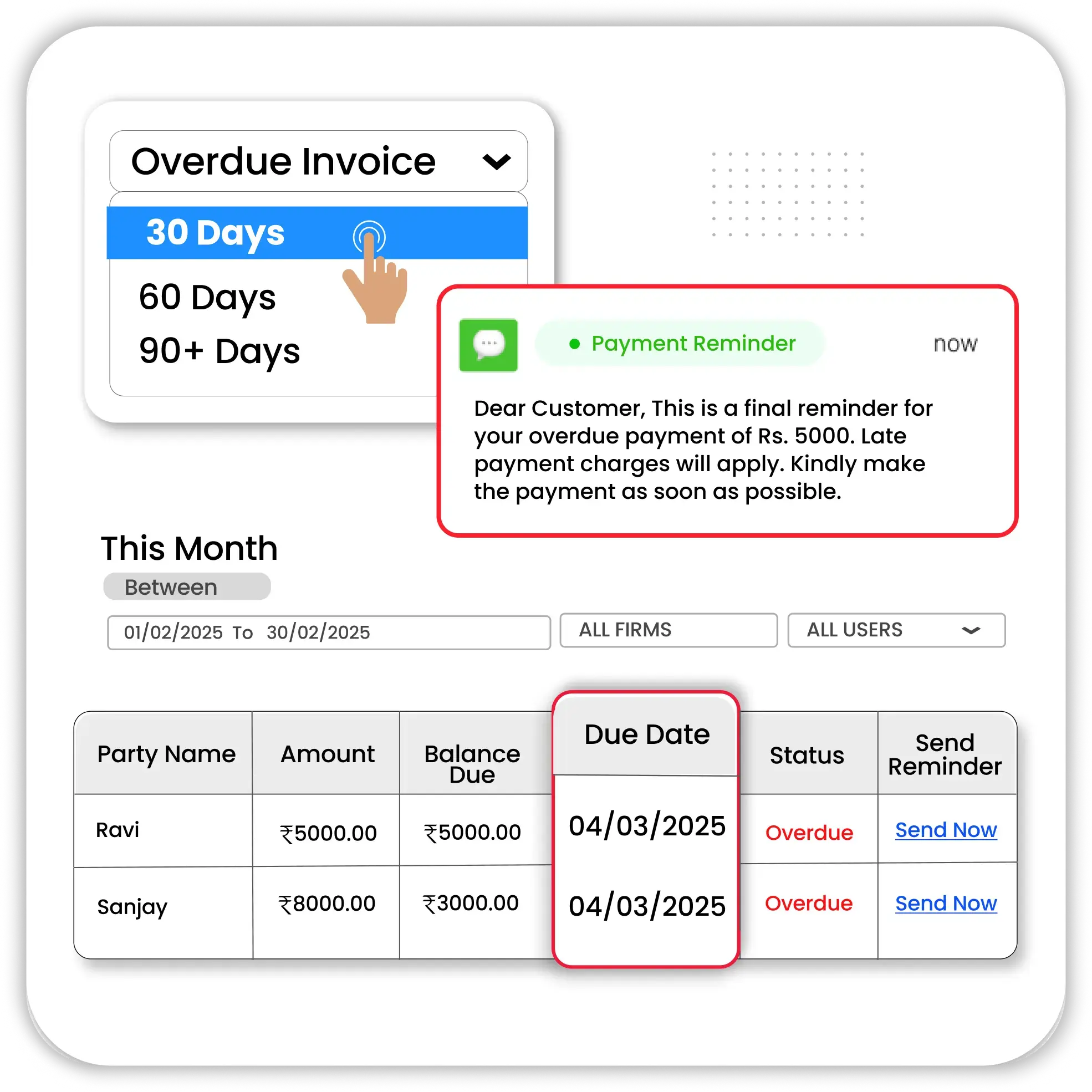 - Upcoming Due Alerts – Get notified about upcoming payments to take proactive collection actions.