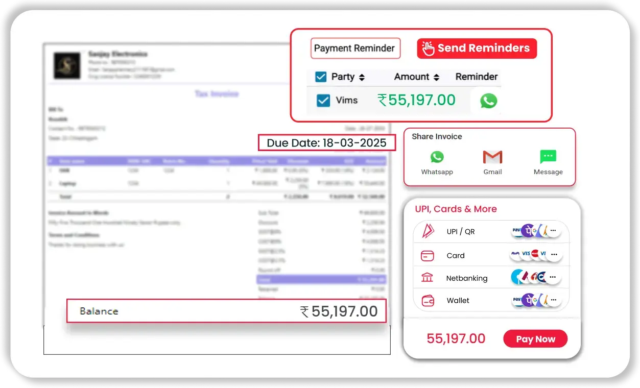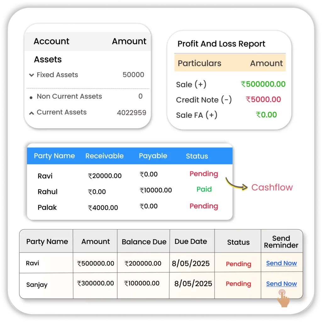 Vyapar’s smart payment tracking, loved by users of farm bookkeeping software and the farm accounting app, helps farmers stay updated on pending payments and improve cash flow.