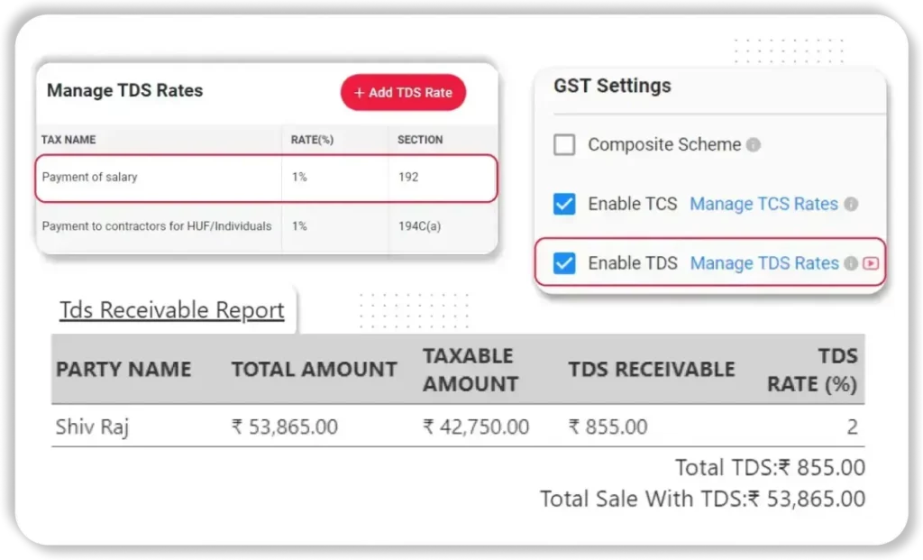 - TDS Return Support: Easily export TDS deduction reports needed for quarterly filings, saving you from last-minute document preparation stress.