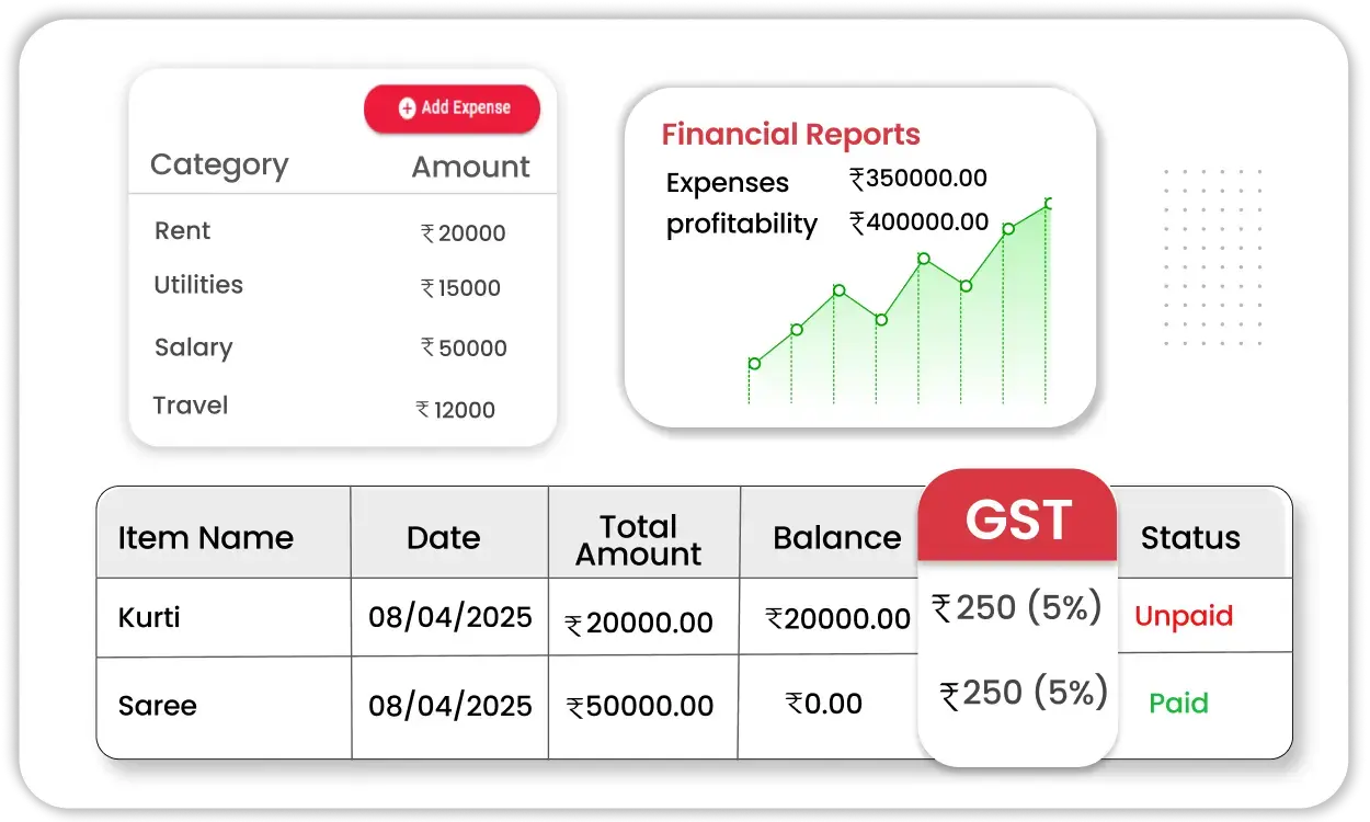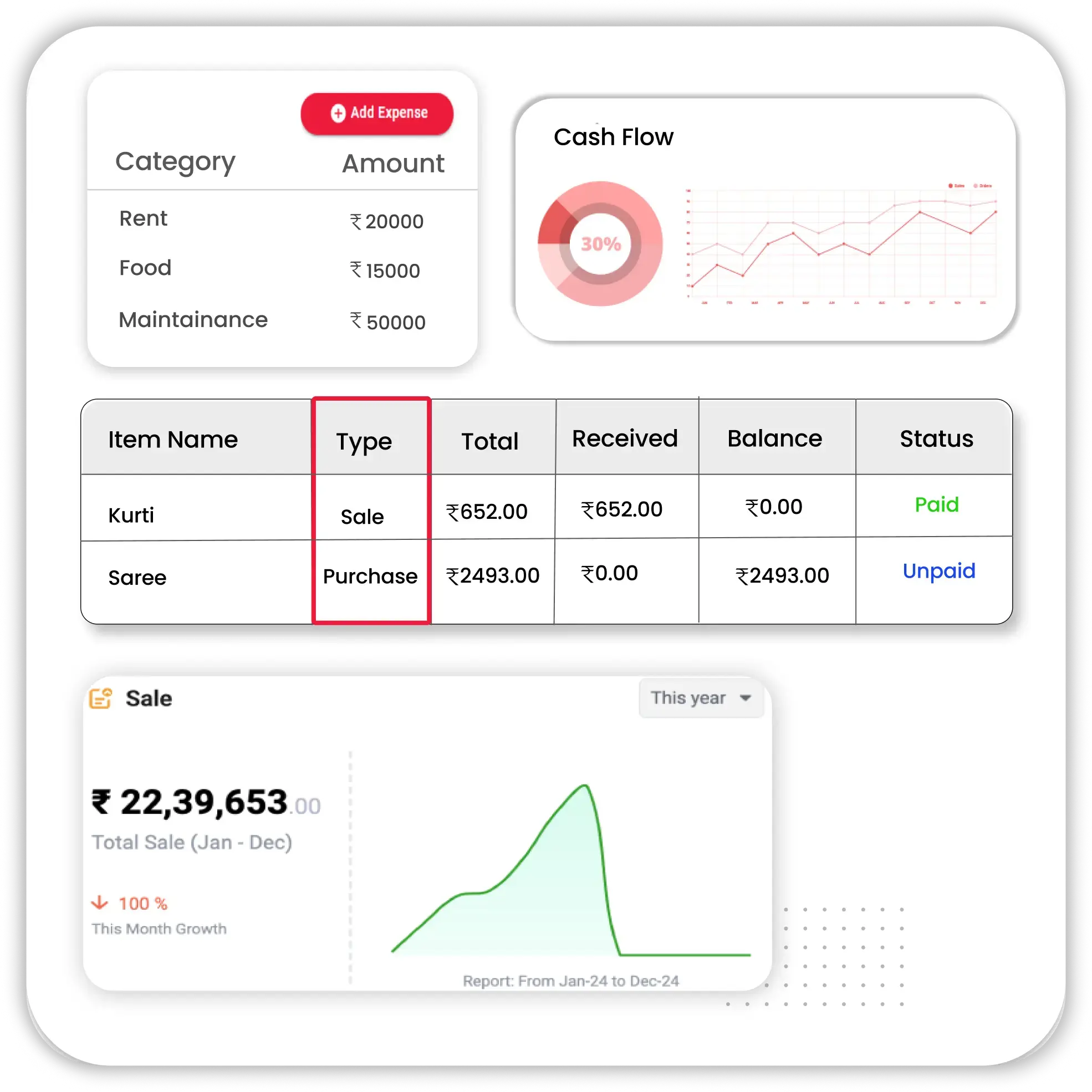 Vyapar’s textile accounting software helps you record and manage every small and big expense in your textile business, so you always know where your money is going.