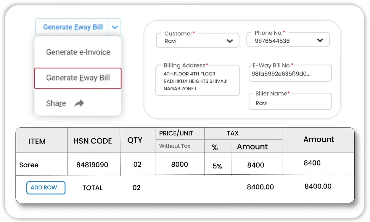 Vyapar’s accounting software for textile business makes it simple to create e-way bills when you’re sending goods to another city or state.