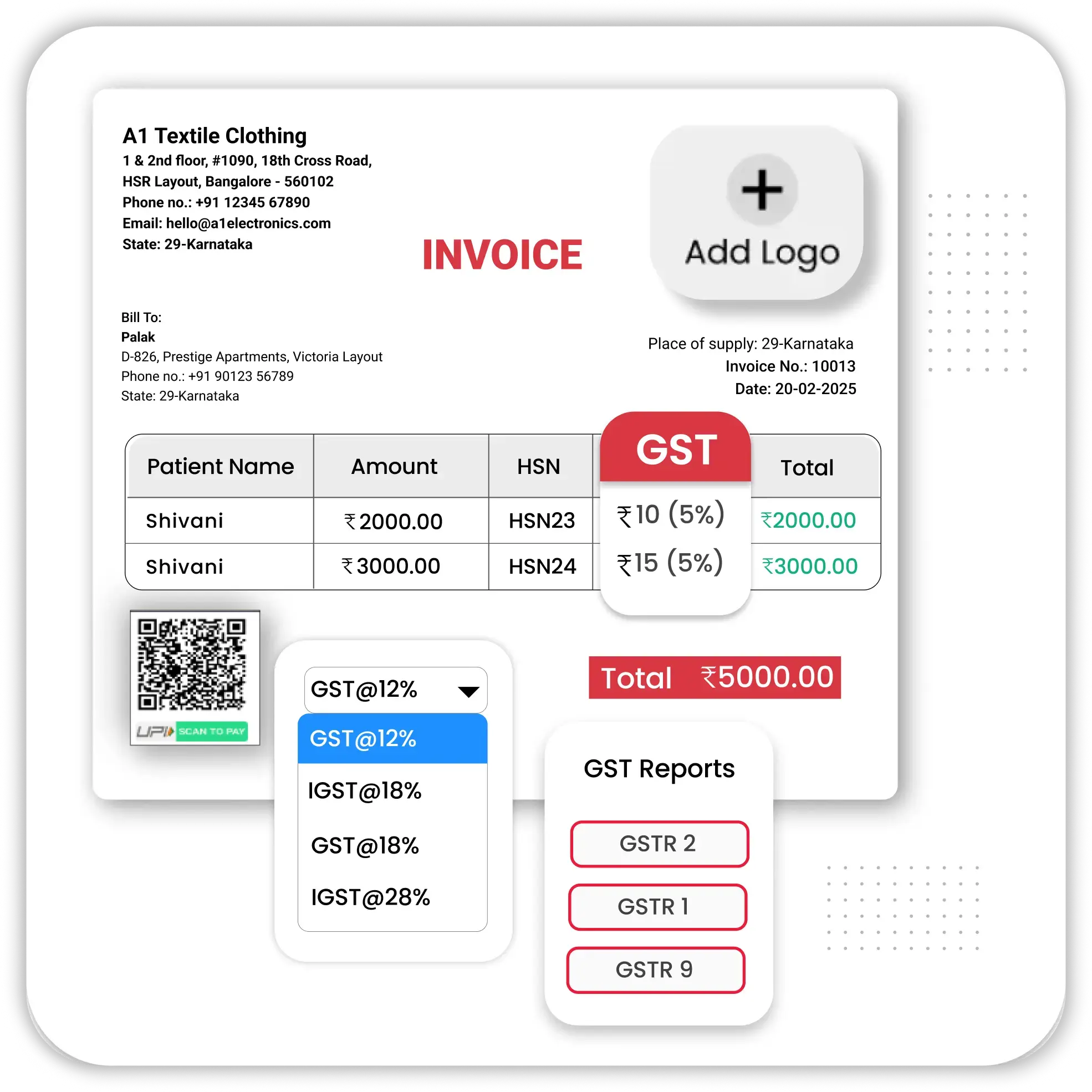 - Auto GST Calculation – Apply the right GST rate on fabrics and garments without manual effort.