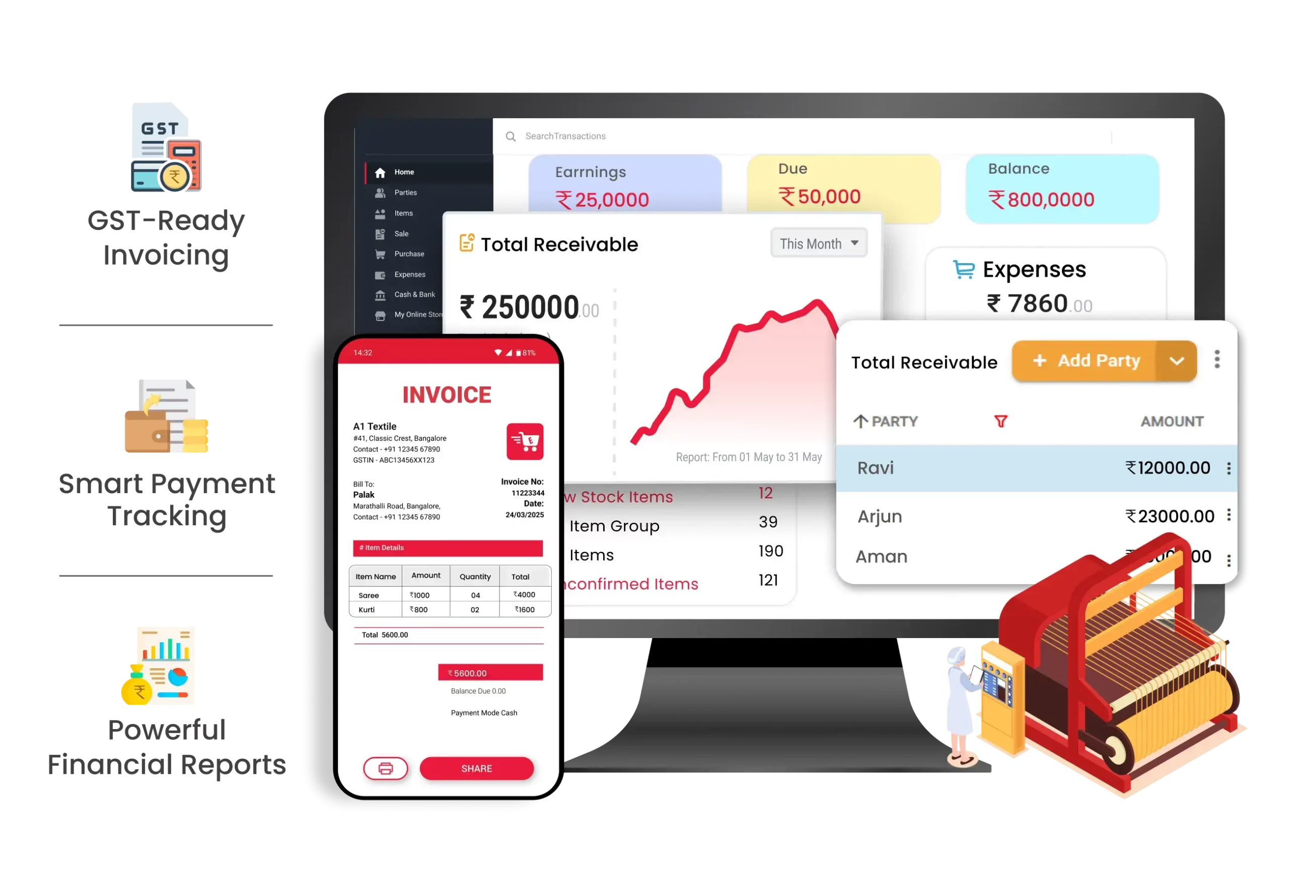 Vyapar’s textile accounting software helps you keep your accounts clean and updated—no accounting background needed.