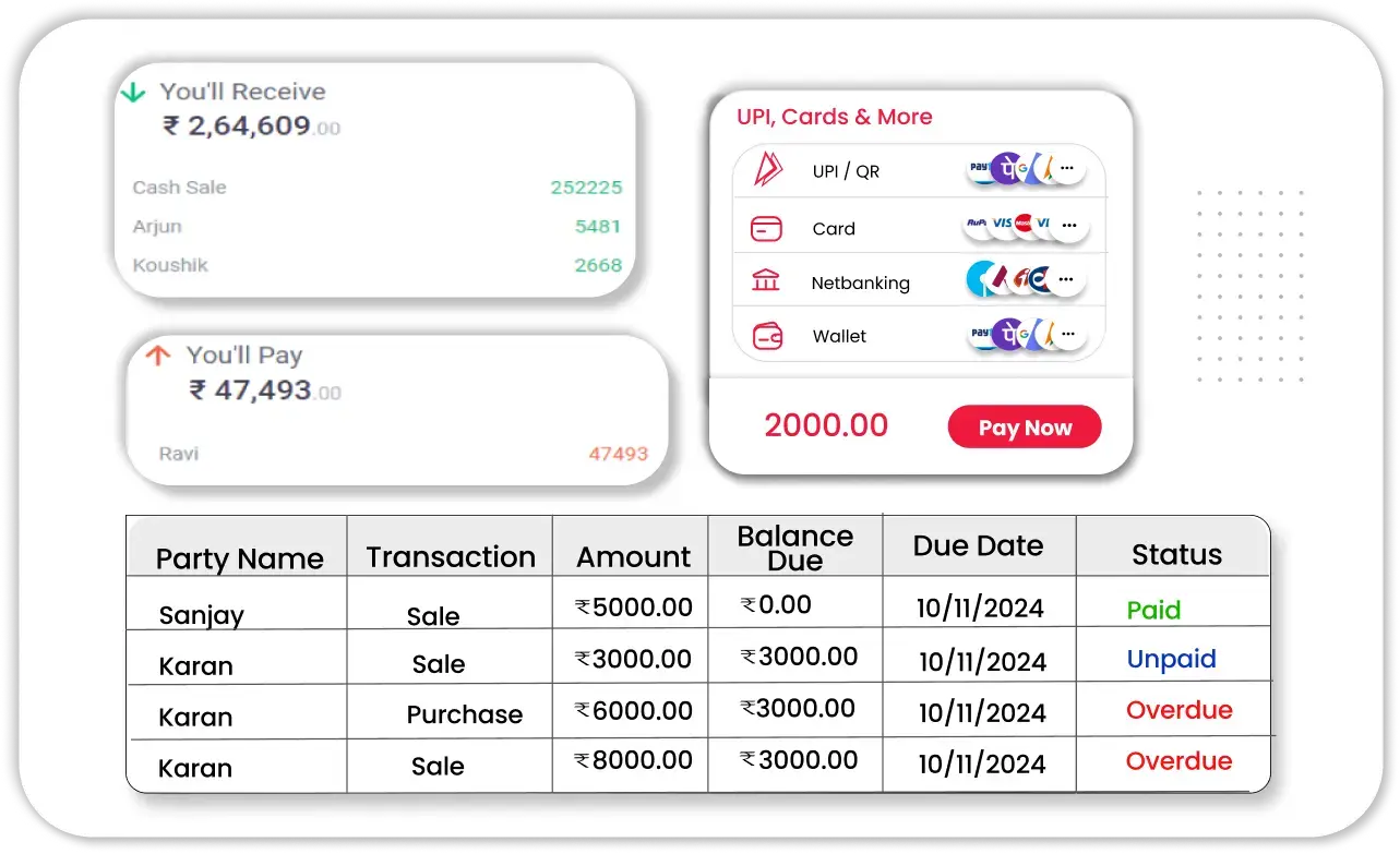 - Multiple Payment Modes: Accept UPI, credit/debit cards, mobile wallets, and net banking transactions.