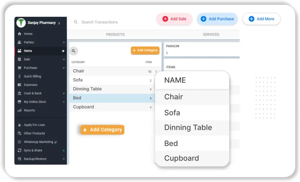Vyapar’s furniture POS software simplifies sales transactions, ensuring smooth and accurate billing for furniture retailers.