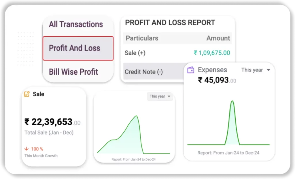 - Custom Report Generation: Create detailed reports on revenue, tax calculations, and stock turnover.