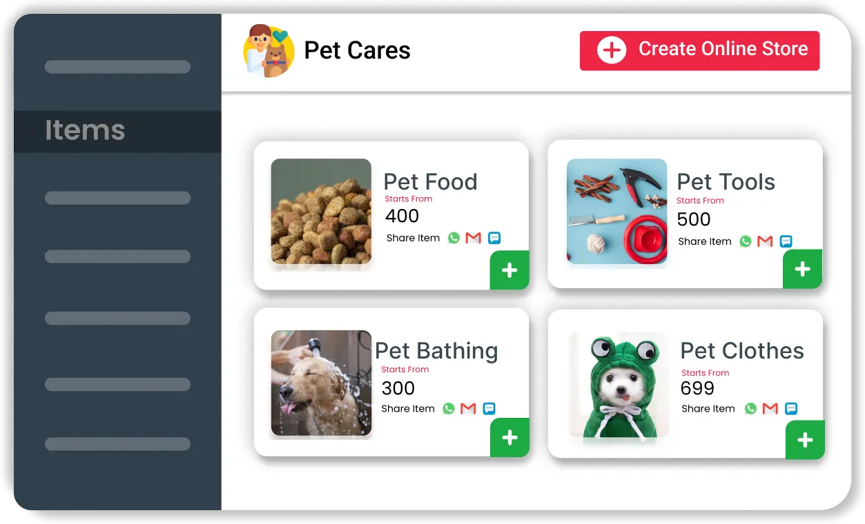 - Create a Digital Catalog – Instantly turn your pet store inventory into an online product list by uploading item details, images, and prices through Vyapar.