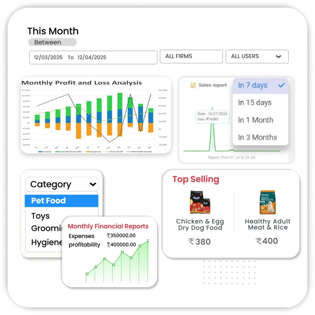 - Category-Wise Sales Breakdown – See how each category—like pet food, toys, or grooming supplies—is performing to make smarter stocking decisions.