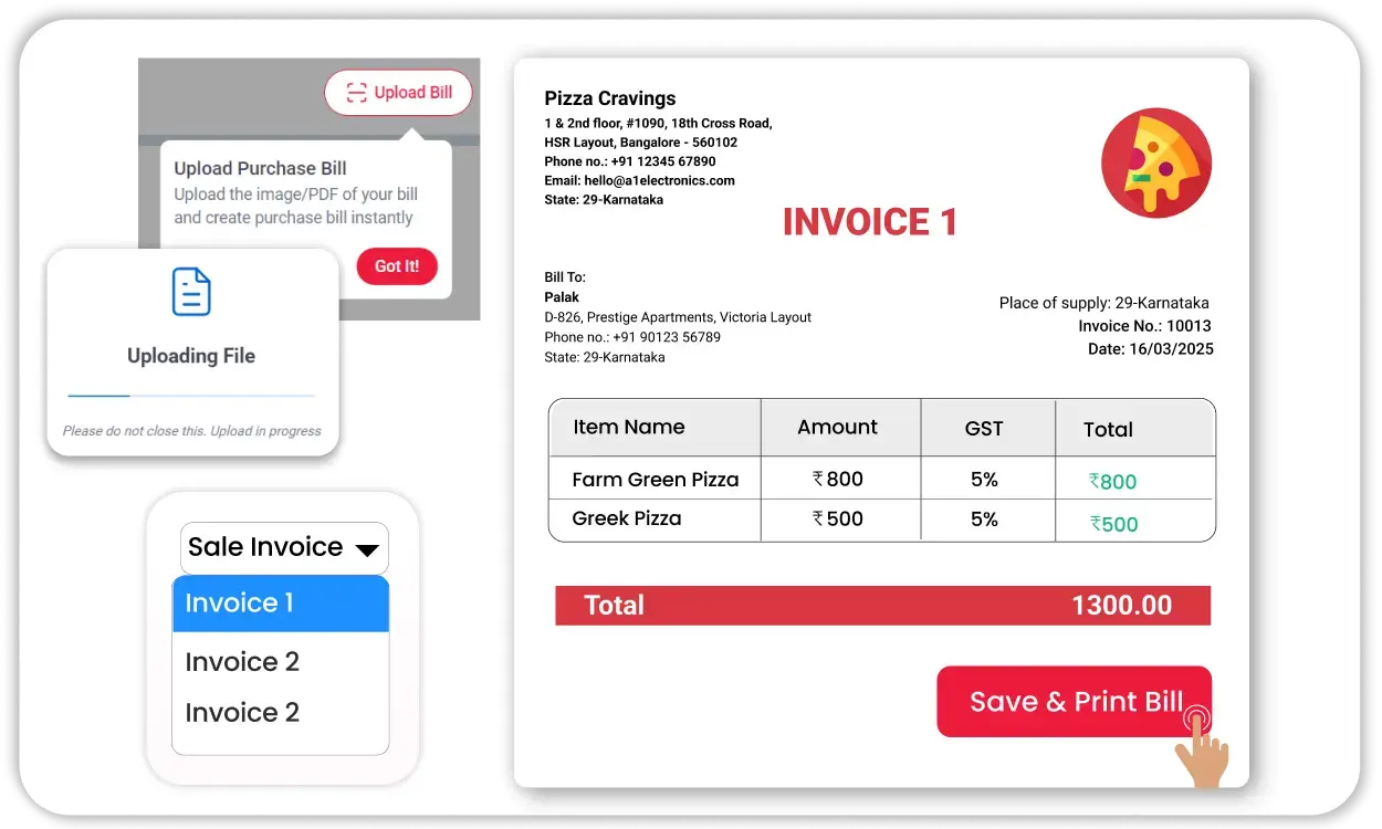 - Customizable Invoice Templates – Choose from multiple invoice templates, add your pizzeria’s branding, and include GST details for a professional look.