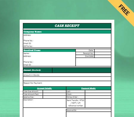 Download professional free cash receipt formats, and make customization according to your requirements at zero cost.